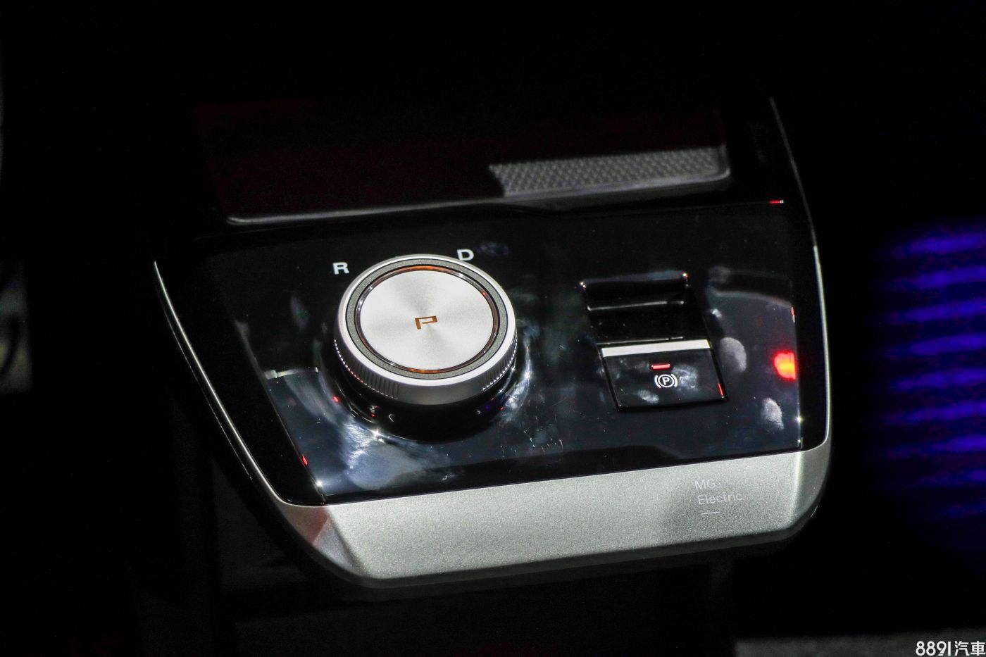 懸浮式中控台設計十分簡潔,上頭僅陳設旋鈕式排檔、電子手煞車等按鍵,後方凹槽則配有手機無線充電板。