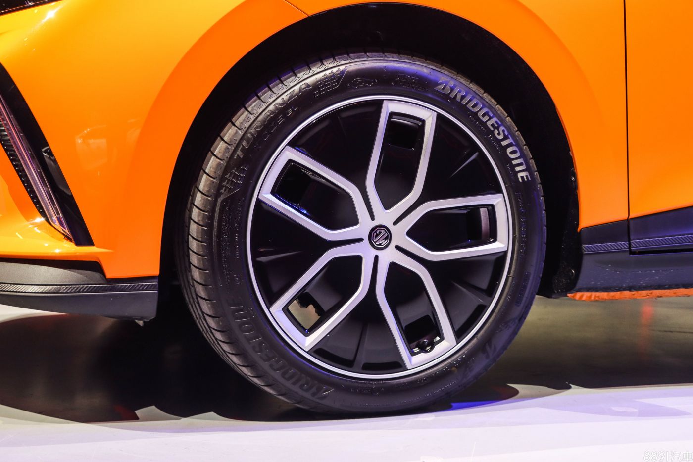 MG4旗艦版配置18吋雙色鋁圈,Y型五幅造型、外加黑色的平整化飾蓋,原廠稱可以降低風阻,配胎為235/45R18普利司通T005 EV,是一款專為電動車開發的輪胎。