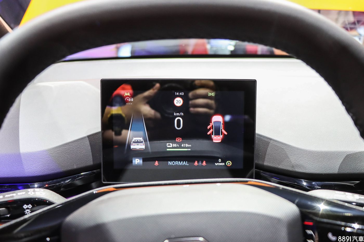 座艙鋪陳以水平線條為主軸,營造出視覺上的簡約感與寬廣度,隱藏式空調出風口、懸浮式中控台等設計都很有特色,儀錶臺上半部採用軟質塑料,搭配大面積鋼琴烤飾板,視覺質感並不會陽春。
