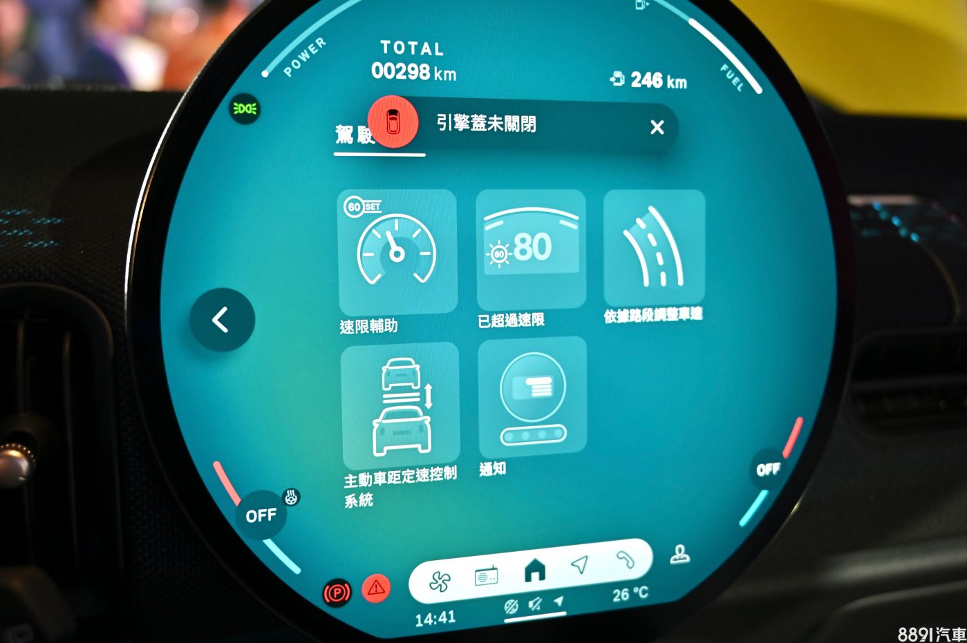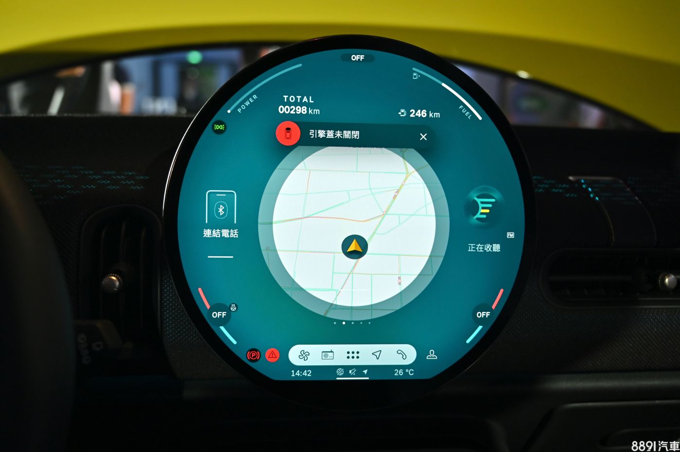 直徑約9.4吋的圓盤型車機,內建Mini OS 9新作業系統,支援口語聲控和手機數位鑰匙外,Apple CarPlay與Android Auto均可無線連接,另有手機無線充電座,同樣納入全車系標準配備。