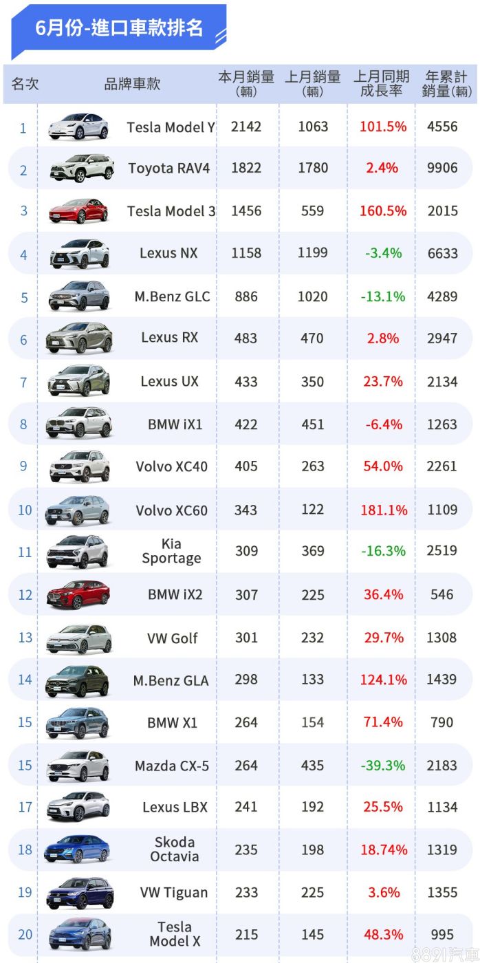 1、2024年6月台灣汽車銷售報告 MG4首月成績揭曉!