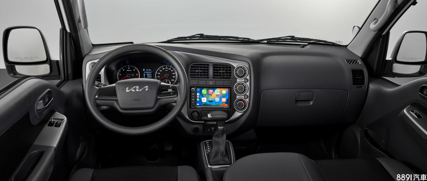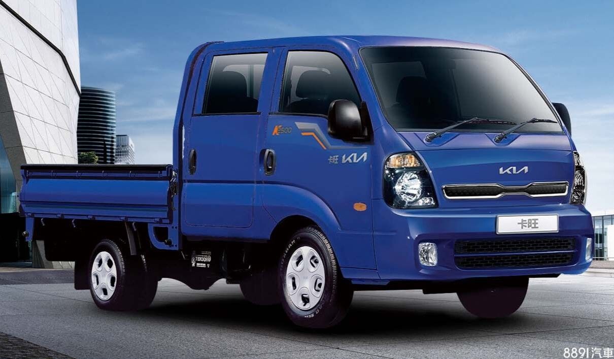 Kia中型商用車卡旺K2500全面進化,外型上,車頭採用Kia家族設計語彙Tiger Nose虎鼻式水箱護罩,加上間歇可微調式雨刷,打造動感年輕的造型的同時,兼具實用性,現在全車系升級直列四合一頭燈(含日行燈功能),營造更具現代感的氛圍。