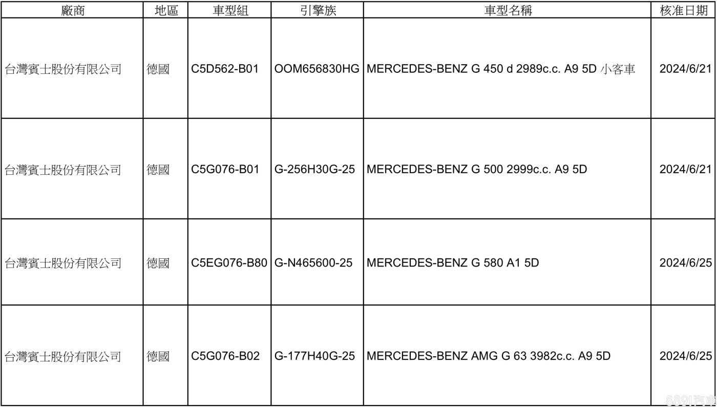 所幸這似乎有點杞人憂天了!除了取得耗能證明,同樣作為國內上市前必要的事前準備,原廠也在上個月為小改G-Class進行環保署噪音檢驗,而送測車型除了已經曝光的G 450 d、G 500和AMG G 63等燃油陣容外,G 580也登錄其中!