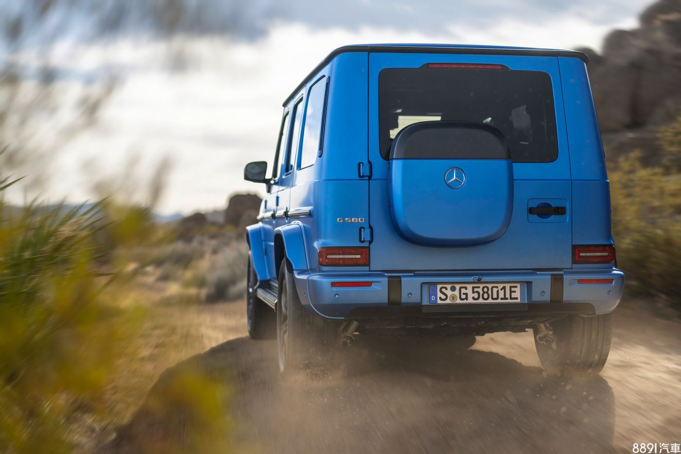 G 580內外造型與燃油款差異不大,主要水箱罩的部分換上幾乎封閉的黑色飾板,並加入發光飾框,藉以效仿品牌EQ電動車款的家族特徵,車尾則掛上方形收納箱取代備胎,預期作為加選配件提供,可用於收納充電線材。