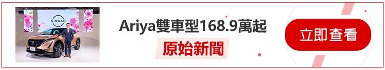 2、Nissan Ariya雙車型168.9萬起上市 較預售價便宜1萬!