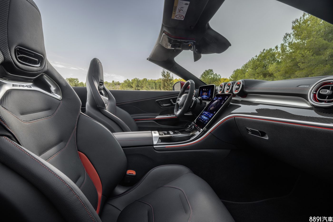 敞篷CLE 53內裝預計也跟Coupe版相當,將以霧面黑色椴木飾板甫以中控台亮黑色飾板,搭配AMG專屬平底方向盤、皮質+麂皮混搭跑車化座椅及紅色安全帶,配備方面包含12.3吋數位儀錶、11.9吋多媒體觸控螢幕、抬頭顯示器、Burmester環繞音響都會列入標配。