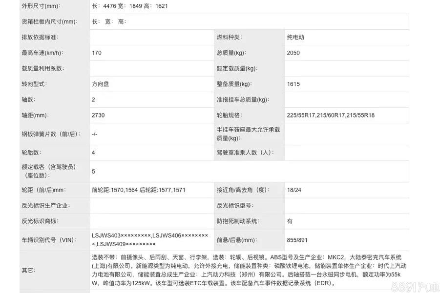 另外自工信部資料顯示,S5依車型將搭配17或18吋鋁圈,高規版有望配備全景天窗,就連後視鏡都有車身同色及黑色的差別。