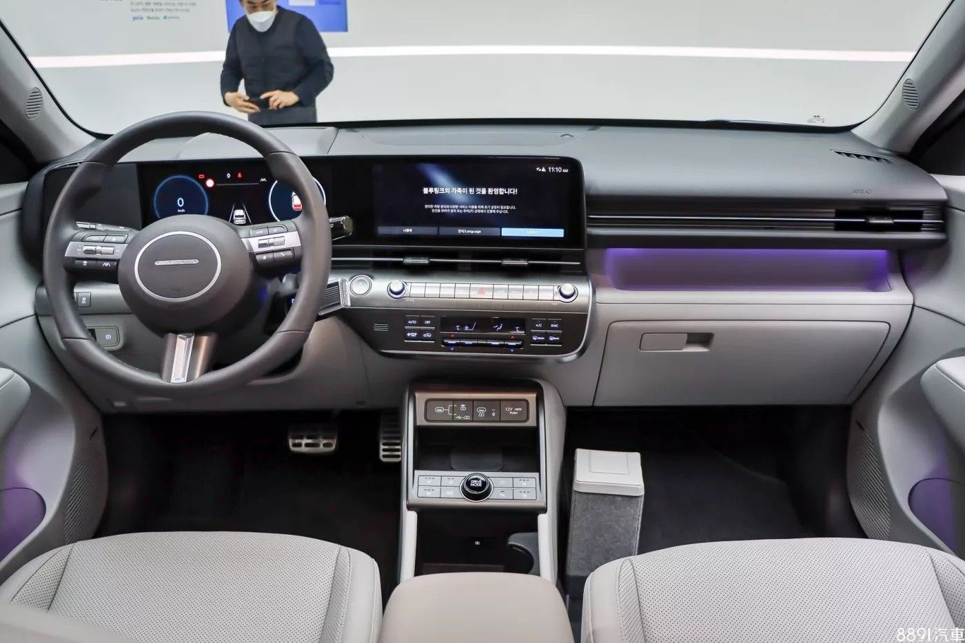 車室搭載雙12.3吋曲面螢幕以及新款方向盤,設計能看到Ioniq 5、Ioniq 6的影子,而原本的按鍵式排檔取消,改為整合到方向機柱上,讓中船得以騰出更多置物空間,座艙空間感也更加開闊。