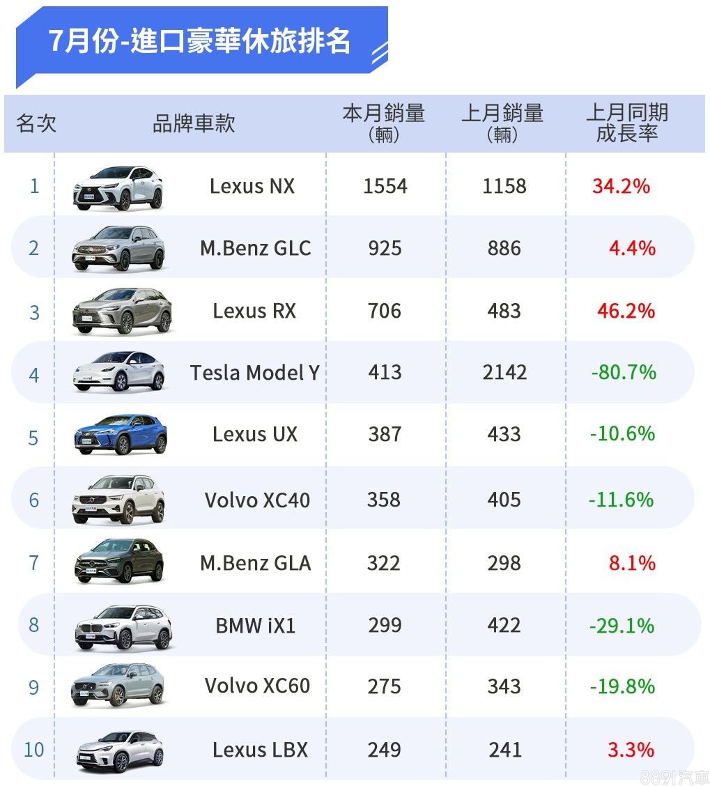 除了NX以外,Lexus還有RX表現亮眼,UX及LBX雖然也有上榜,但成績就算是持平,不過有眾多熱銷車系撐腰,讓品牌本月掛牌數衝上3300台,較6月大漲26.4%。