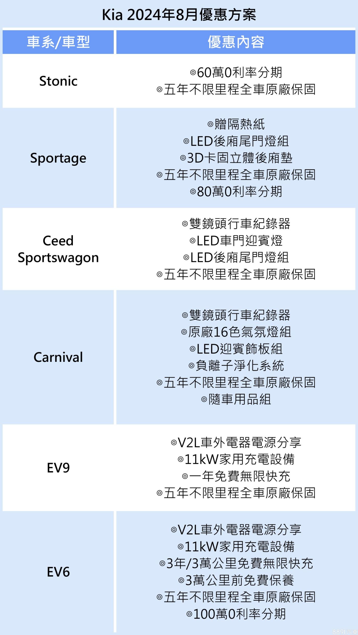 只要於8月入主Sportage、Ceed Sportswagon、Carnival等車款指定車型,均可免費升級多項配件。