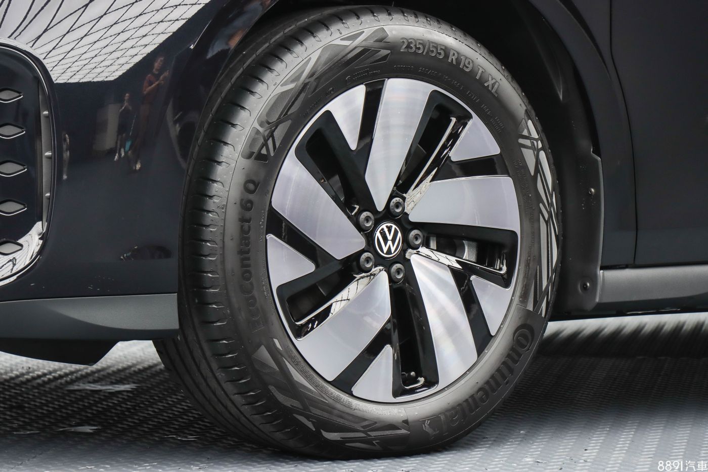配備19吋雙色鋁圈,造型略採封閉式樣,原廠稱是為求降低風阻、增加續航而設計,配胎為前235/55R19、後255/50R19馬牌EcoContact 6節能胎。