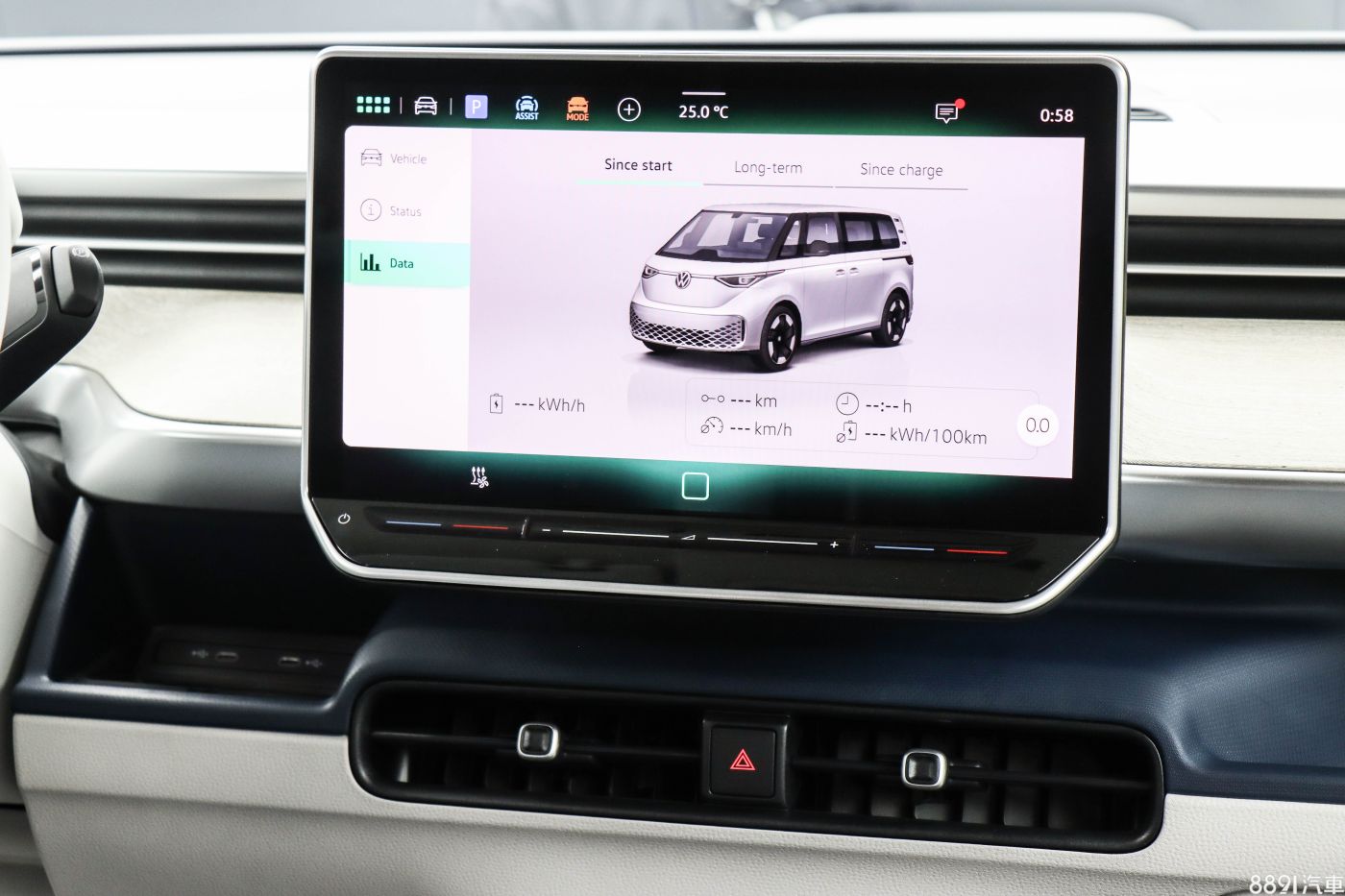 12.9吋多媒體觸控螢幕,畫面編排簡單,但同樣沒有中文顯示,主選單在螢幕上方,底下則有電容式觸控按鍵,可以快速進入空調選單。