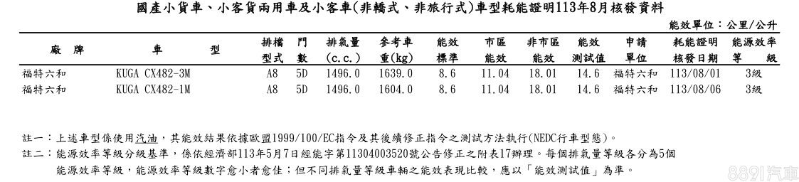 值得一提的是,目前Kuga全車系僅頂規2.0升Vingale有提供客車版,但在新送測資料中,可見兩款1.5升車型以小客車形式取得認證,莫非代表Kuga相對入門的1.5升車型會在小改後跟進推出解放後座的客車版?就讓我們拭目以待!