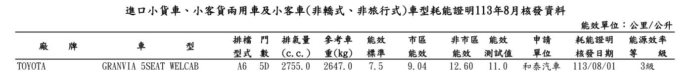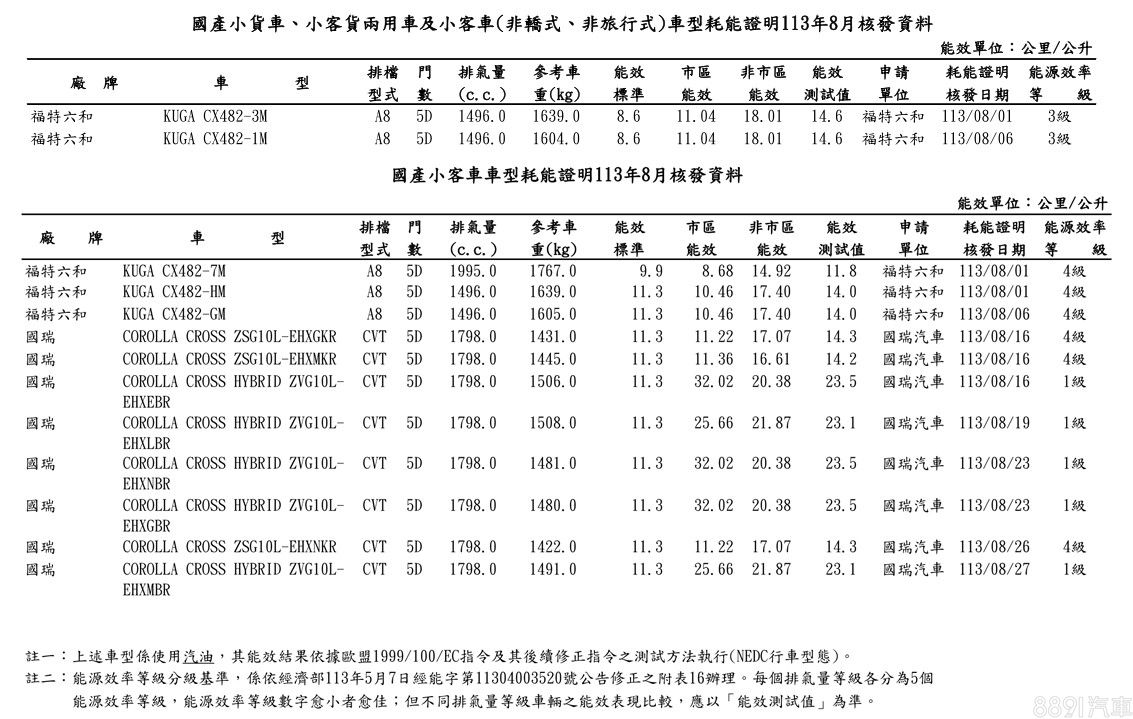 在新一期能源署核發資料中,登錄了多達8款Toyota Corolla Cross,根據既有資訊,推測很可能是預計在近期開賣的小改款版本,動力推測沿用現款配置,涵蓋汽油版與Hybrid車型,其中油電款最優繳出23.5km/L的1級平均能耗,汽油款則以最佳14.3km/L的成績取得4級能效認證。