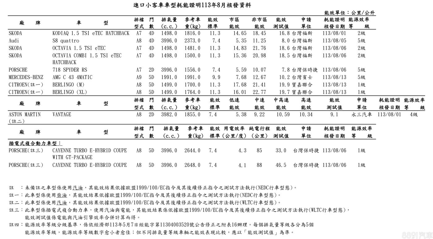 8月也有多款進口車型取得認證,不過讓我們聚焦在Skoda Octavia和Citroen Berlingo兩款小改款車型上。小改款Octavia目前國內先行送驗五門掀背和Combi旅行車型各一款,均搭載1.5升輕油電動力,分別繳出18.6km/L和18.5km/L的平均能耗,雙雙取得2級能效認證。
