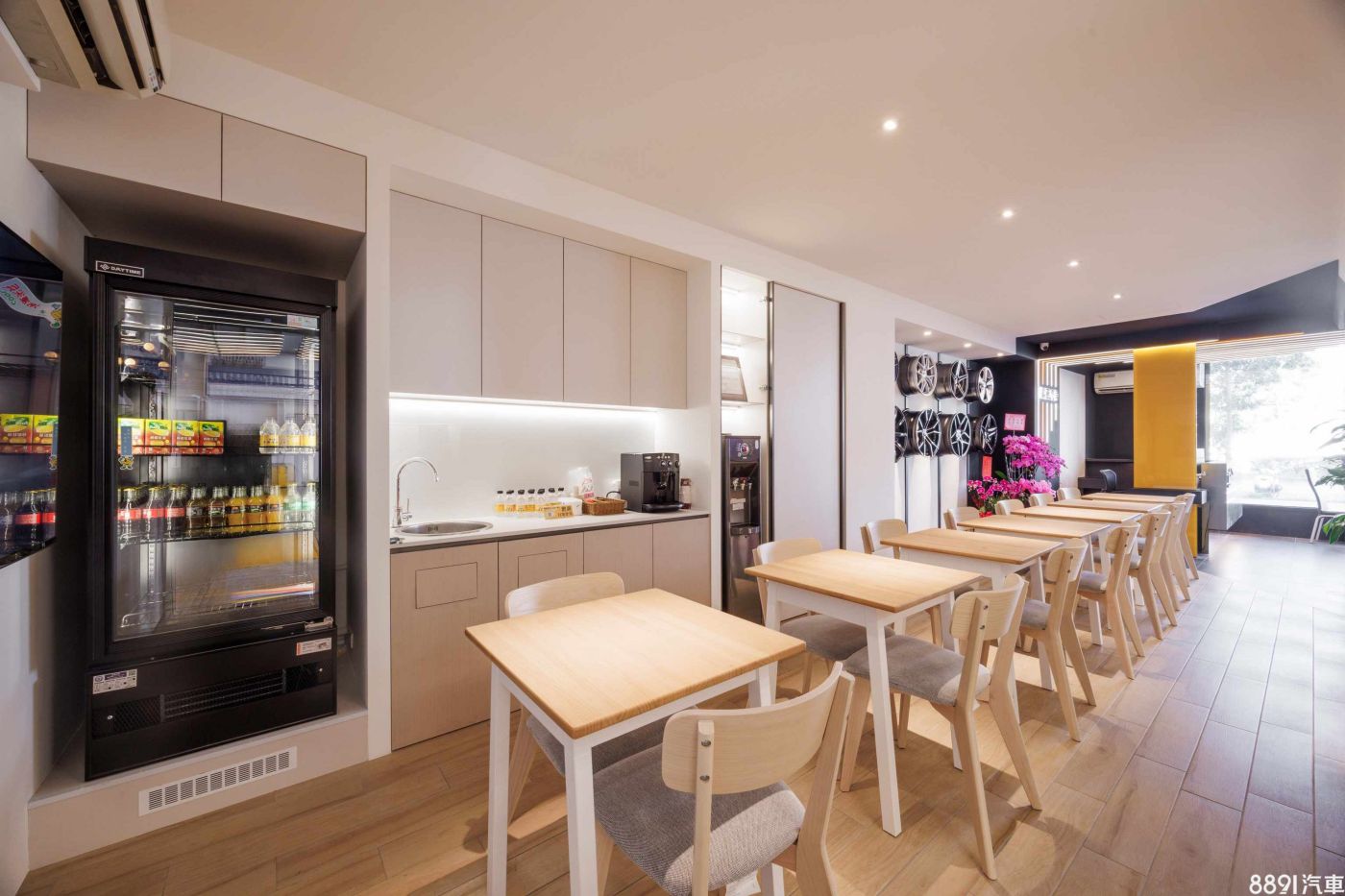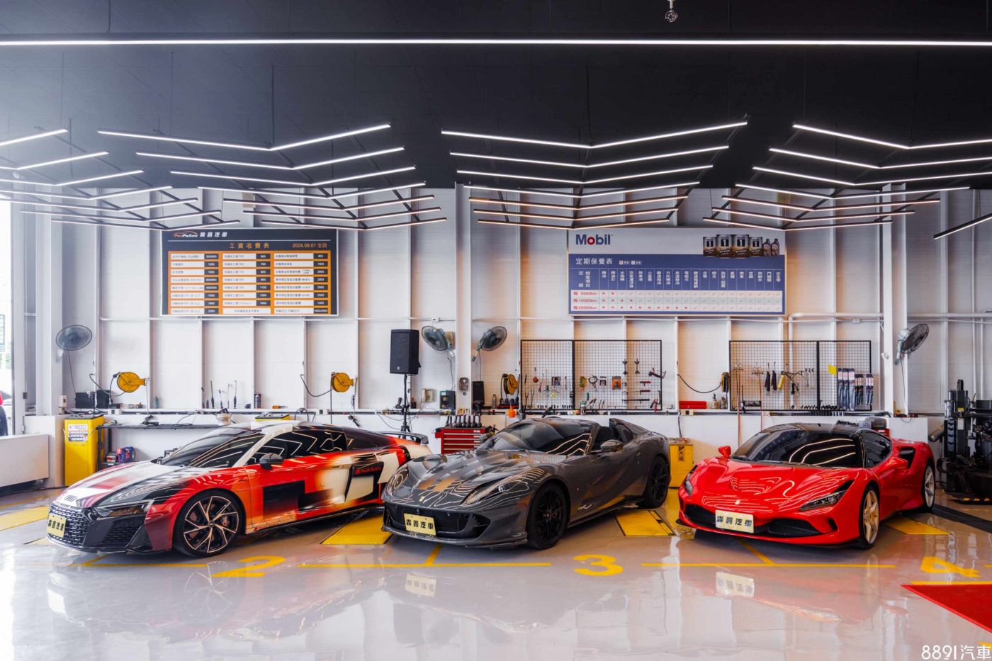 廠內許多設備都經過升級更新,保修空間挑高6米,並設置8個服務工位,其中3個配置了載重可達3.5公噸的頂高機,能作電動車和重量級車款保修使用。客戶等待期間,則可享用免費咖啡飲品,店內也規劃品牌歷史展示牆供駐足閱覽。
