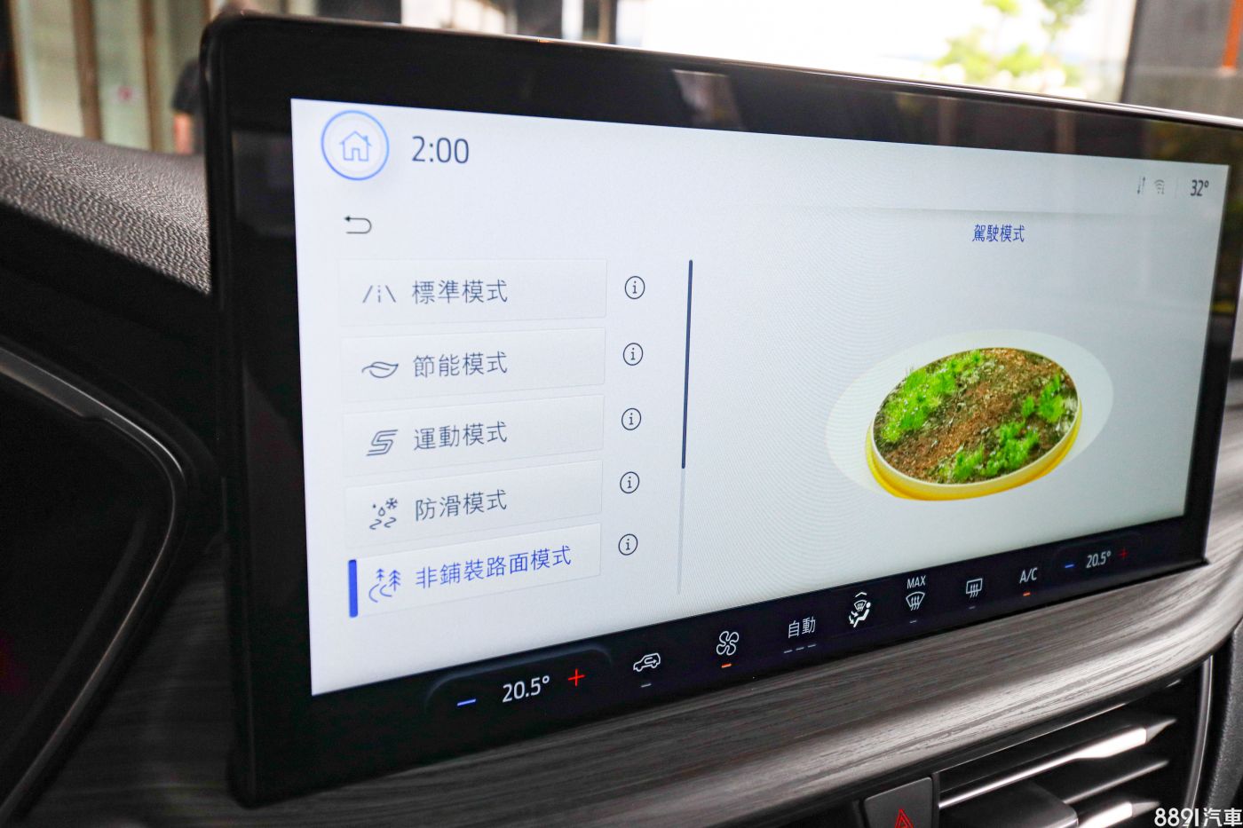將空調介面整合於螢幕下方的13.2吋觸控式SYNC 4多媒體系統,雖然已於小改款Focus上看過,但其流暢度與好上手程度依舊值得給個讚,支援導航、360度環景、無線Apple CarPlay等便利又實用的功能,先前空調位置則改置引擎啟閉鍵、音量旋鈕及駕駛模式切換等按鍵。