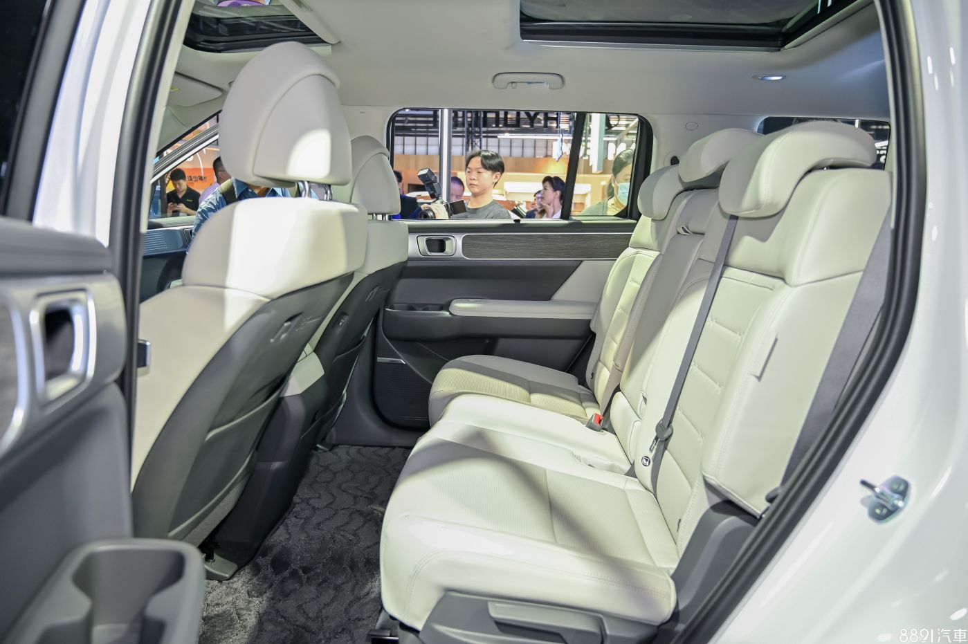在二排乘客調整至適當位置,以約170cm的成人入座,腿部略顯侷促、椅墊也偏短,個人覺得比較適合小朋友使用,兩側都有置杯架、充電孔可作利用,其中GLTH-C車型獨享電動雙天窗,有助於提升車內採光及視野開闊感。