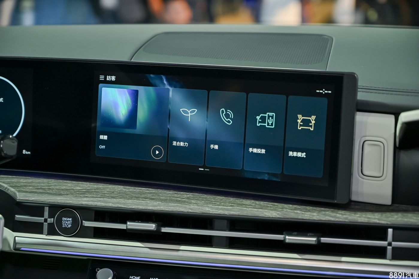 12.3吋觸控多媒體螢幕,選單畫面採用橫幅架構,具備子母畫面,可以顯示多樣化資訊,並支援無線Apple CarPlay與Android Auto連接功能。
