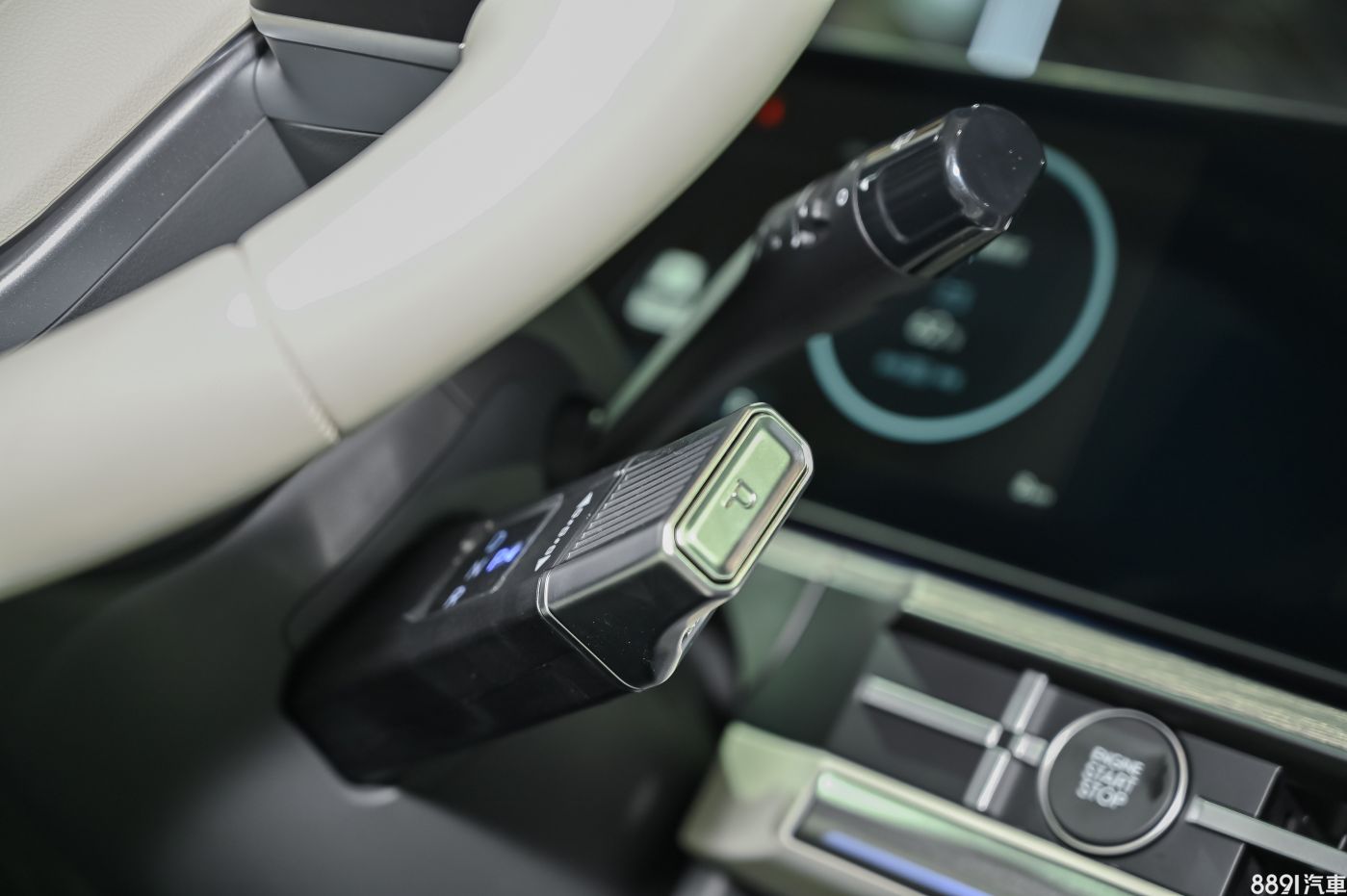 捨棄原先按鍵式排檔的設計,新款Santa Fe改用整合在方向機上的旋鈕式排檔,其操作方式往前轉是D檔、往後轉是R檔,P檔則需要按壓頂部按鈕。