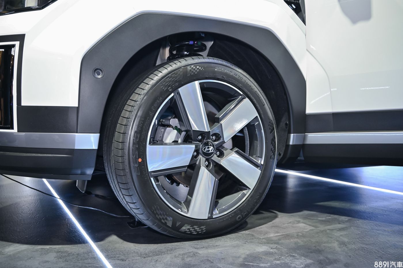 除了入門款配置18吋鋁圈外,其餘車型皆搭載20吋鋁圈,五幅式造型簡單樸素,展示車配胎為255/45R20錦湖輪胎Ecsta PS71。