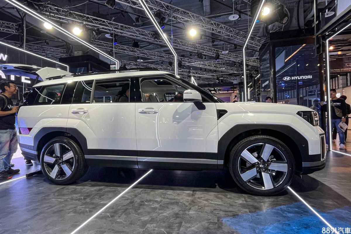 根據原廠公布數據,新款Santa Fe車身尺碼為4830×1900×1770mm,相比舊款更長更高,軸距2815mm增加了50mm,加上水平腰線、大面積三角窗、橫貫車身下緣的銀色飾條等設計,都進一步拉長了車側的視覺效果。