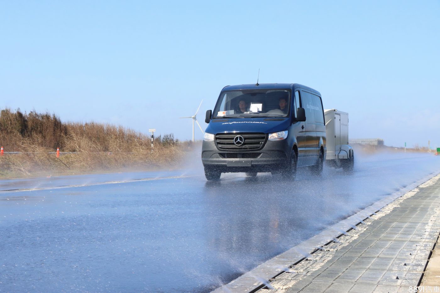 測試濕地抓地力則需要來到佔地兩公頃、全長670m的專用測試道進行,這座場地柏油舖面要求極高,柏油高低落差要求在2mm以內,比機場跑道還要平坦。高達1152組的灑水頭,精準控制水膜厚度在1mm以內,符合國際測試標準。