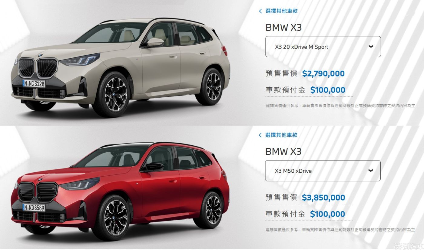 新世代X3要來啦!BMW台灣官網稍早進行更新,放上了大改款X3的預售資訊,預告首批將導入「X3 20 xDrive M Sport」和「X3 M50 xDrive」兩款車型,分別開出279萬、385萬的預售價格。