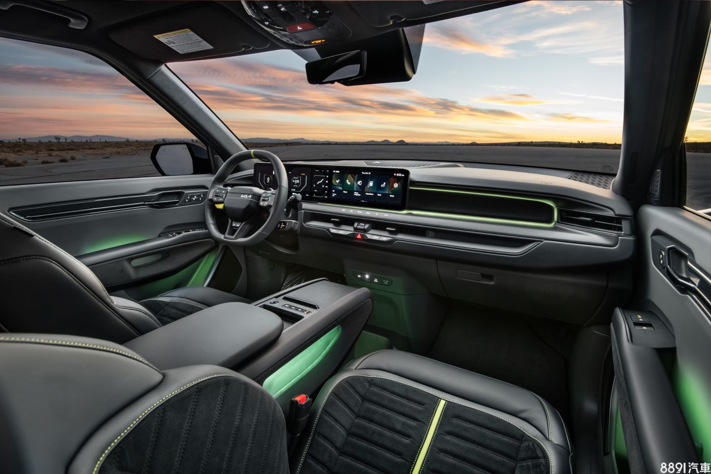 EV9 GT由218hp的前馬達和367hp的後馬達組成四驅配置,可共同造就501hp的最大馬力,相較現售EV9 GT-line多了116hp輸出功率,並宣稱最快4.3秒即可自靜止加速至60mph(約96km/h)。