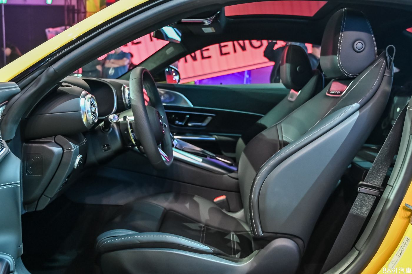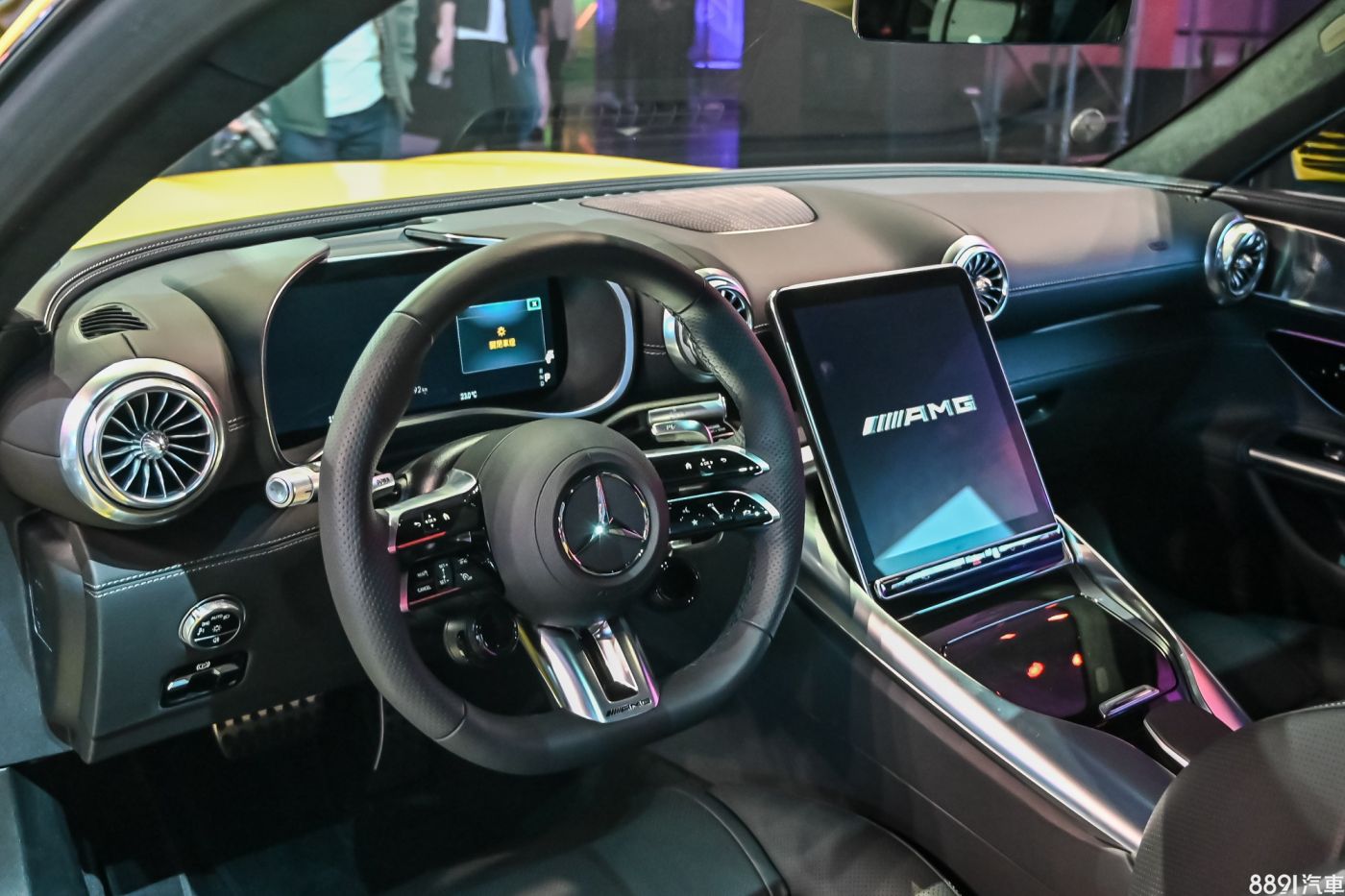 座艙部分與SL-Class相仿,採用12.3吋數位儀錶+11.9吋中控直立螢幕組成,MBUX系統支援原廠中文導航、AR擴增實境導航、無線手機連接等功能。內裝鋪陳方面,入門款中船主要以鋁質飾板為主,頂規則改搭碳纖維飾板。