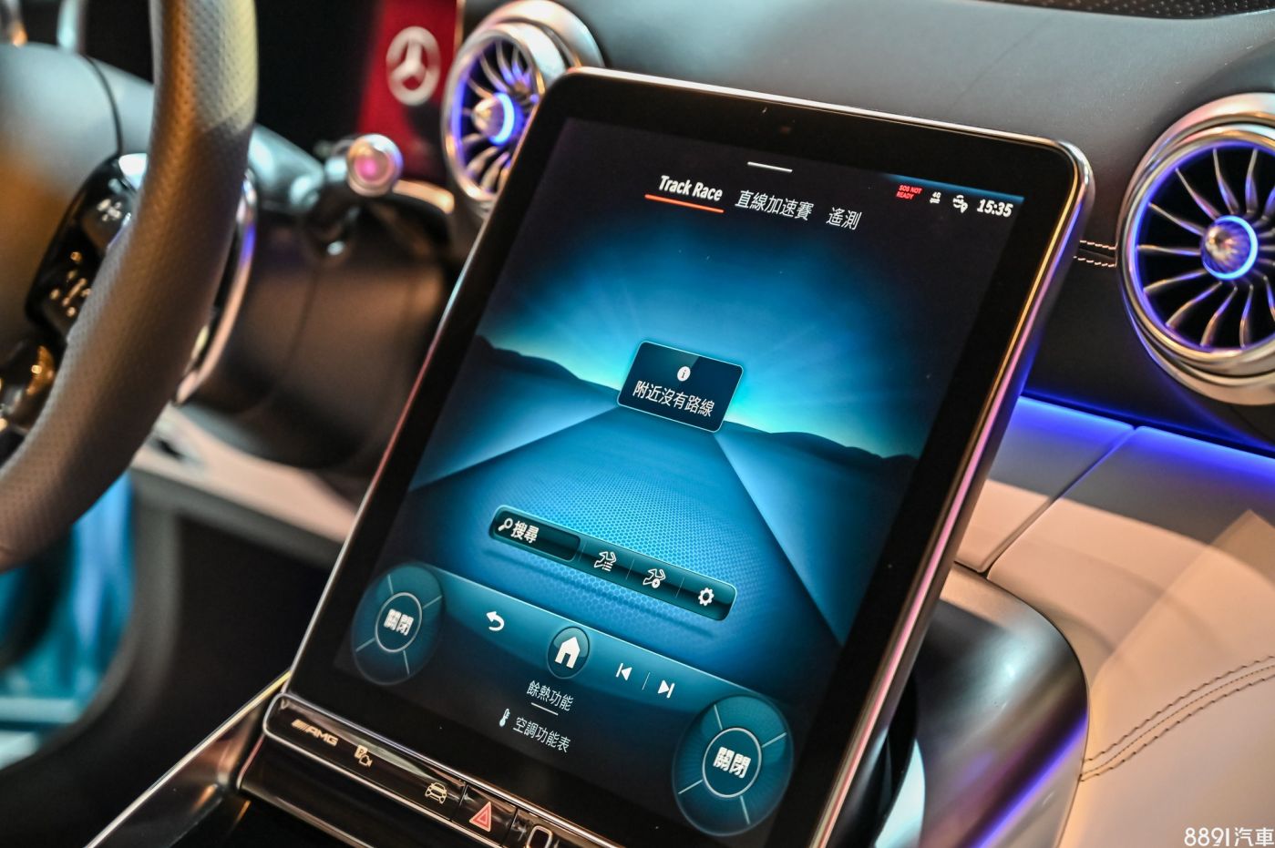 中控螢幕內建AMG Track Pace賽道駕馭應用程式,其專屬選單可顯示單圈計時、加速測試等功能,也可監測當下四輪驅動比例、後輪轉向角度,提升駕駛樂趣。