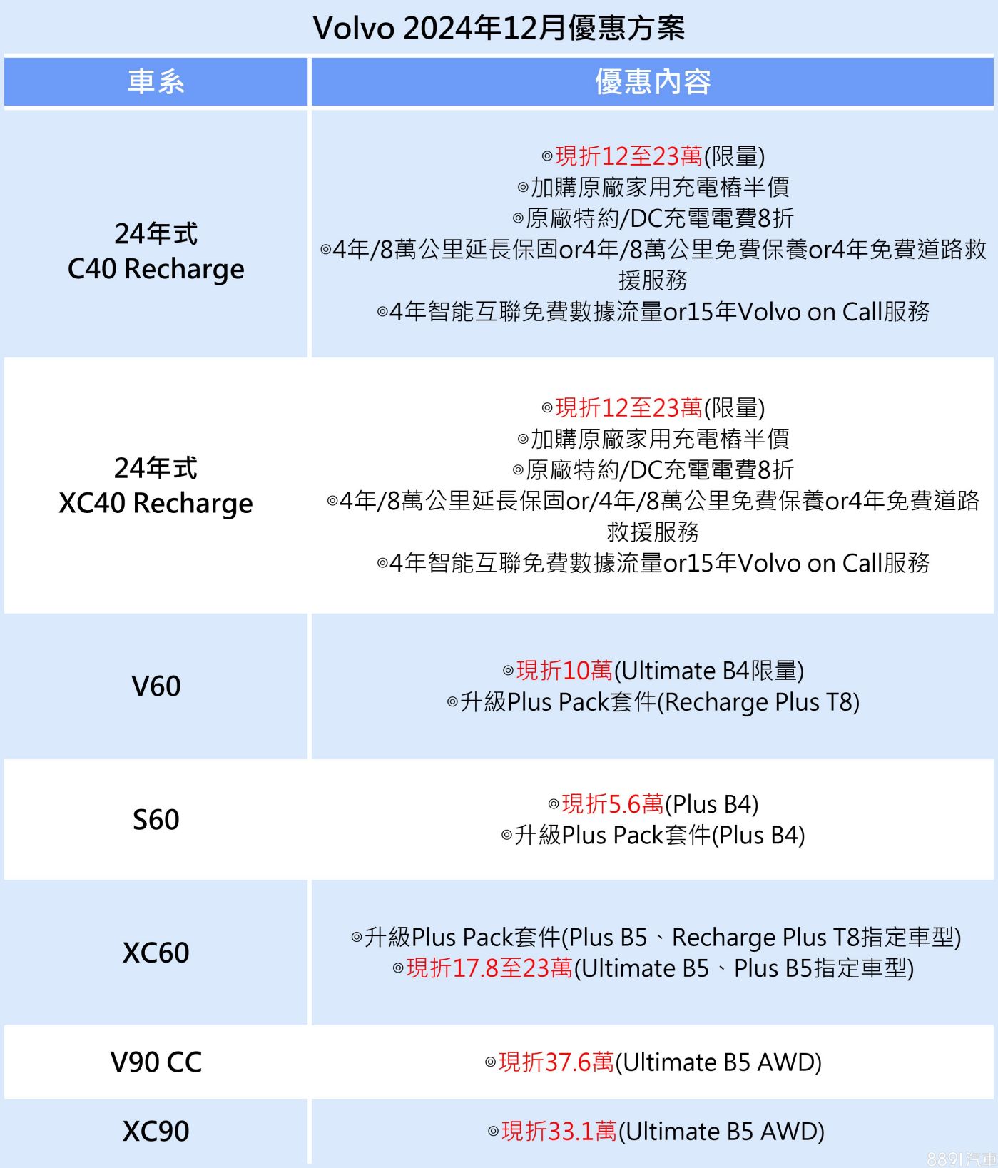 此外,舊年式XC40 Recharge和C40 Recharge,除了現折最高23萬,還能享有原廠特約/DC充電電費8折、延長保固、Volvo on Call服務等好康,相關詳情可至官網或展間洽詢。