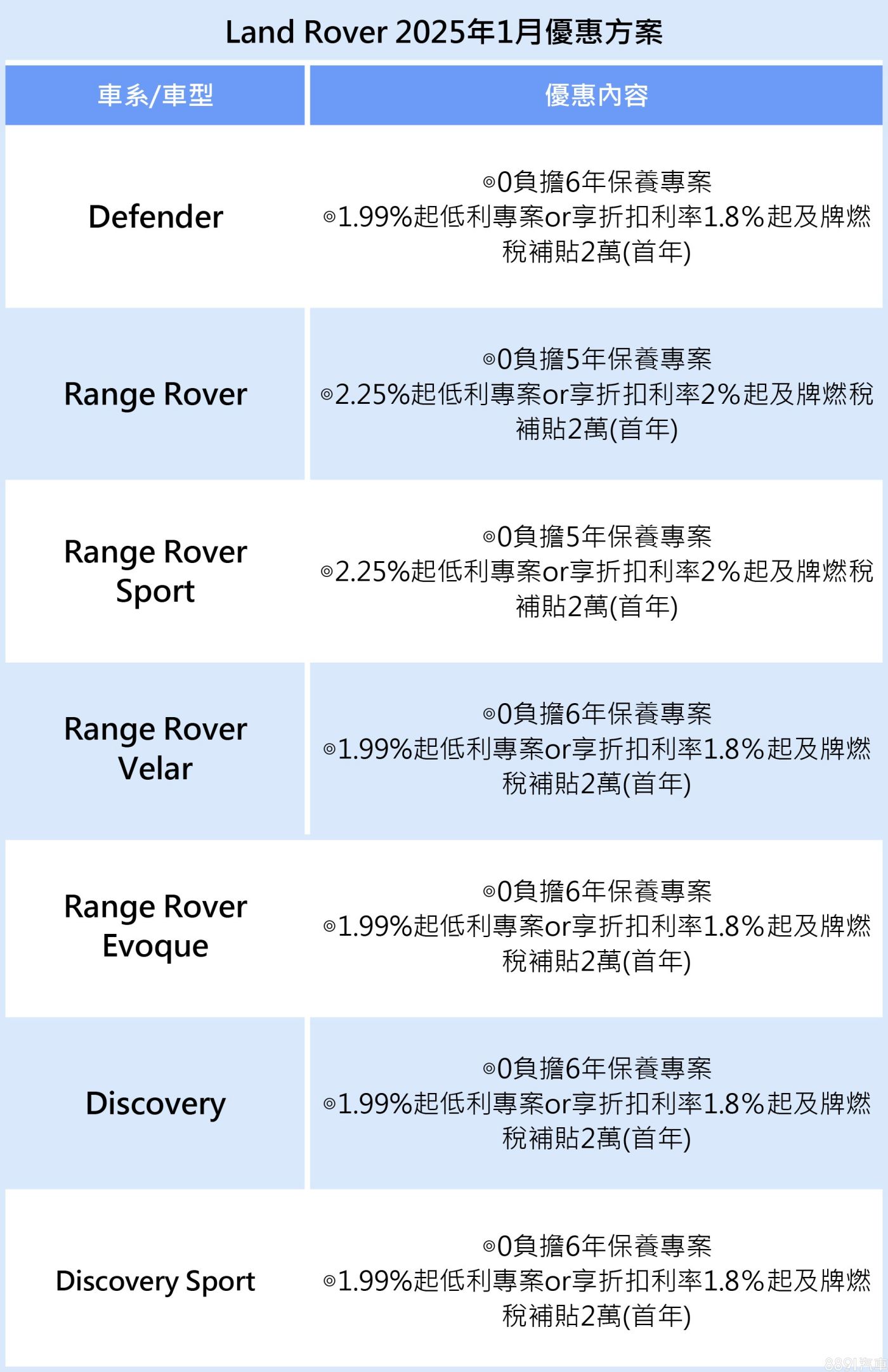 Jaguar本月持續針對旗下全車系,推出0負擔最高6年原廠保養專案及購車低利率方案,更加碼補貼首年牌照/燃料稅2萬元,I-Pace再享有電動車專屬禮遇。