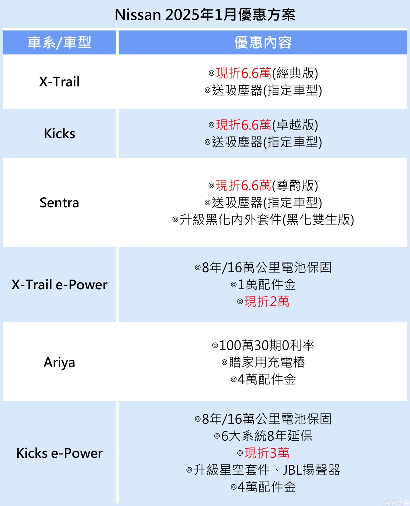 Nissan持續祭出最實在的現金優惠,熱門國產車系如Sentra、Kicks、X-Trail等指定車型,都可享6.6萬購車金優惠。
