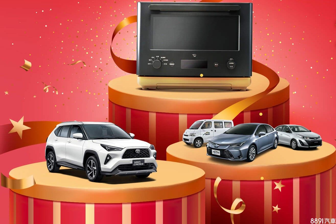 1月入主Vios、Corolla Altis、Town Ace、Yaris Cross等車系指定車型,均獲贈象印烘烤微波爐,並可享高額0利率、5年14萬公里延保等優惠。其他車款則適用分期0利率專案。