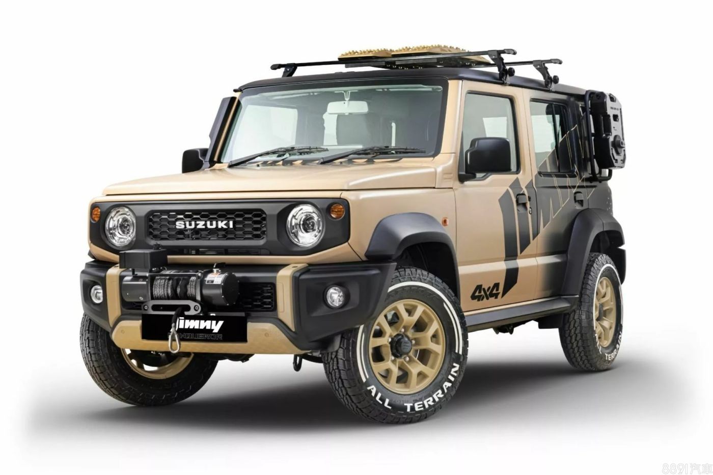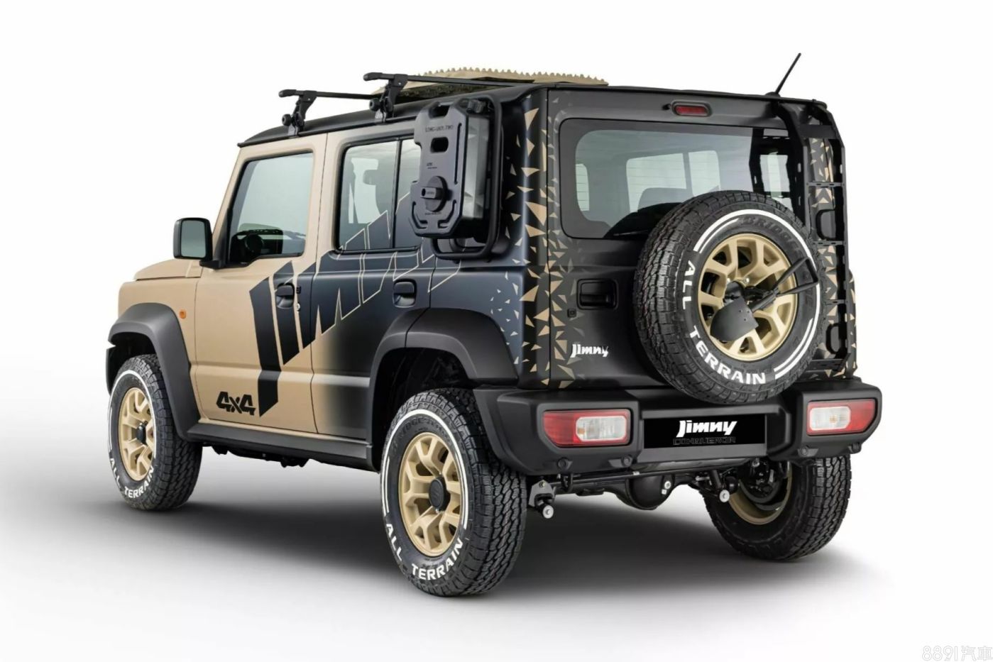 近日開幕的2025印度巴拉特國際車展上,Suzuki帶來一系列改裝概念車,創意與完成度都很高,一點也不輸前陣子的東京改裝車展!首先,目前僅在印度生產的五門Jimny,自然成為重點示範組,眼前這輛名為「Jimny Conqueror」征服者」概念車,主要採沙漠黃車色,連16吋鋁圈也是同色系,搭配黑色車貼做對比,而車身後半段以漸層方式轉為黑色,視覺上相當有層次。