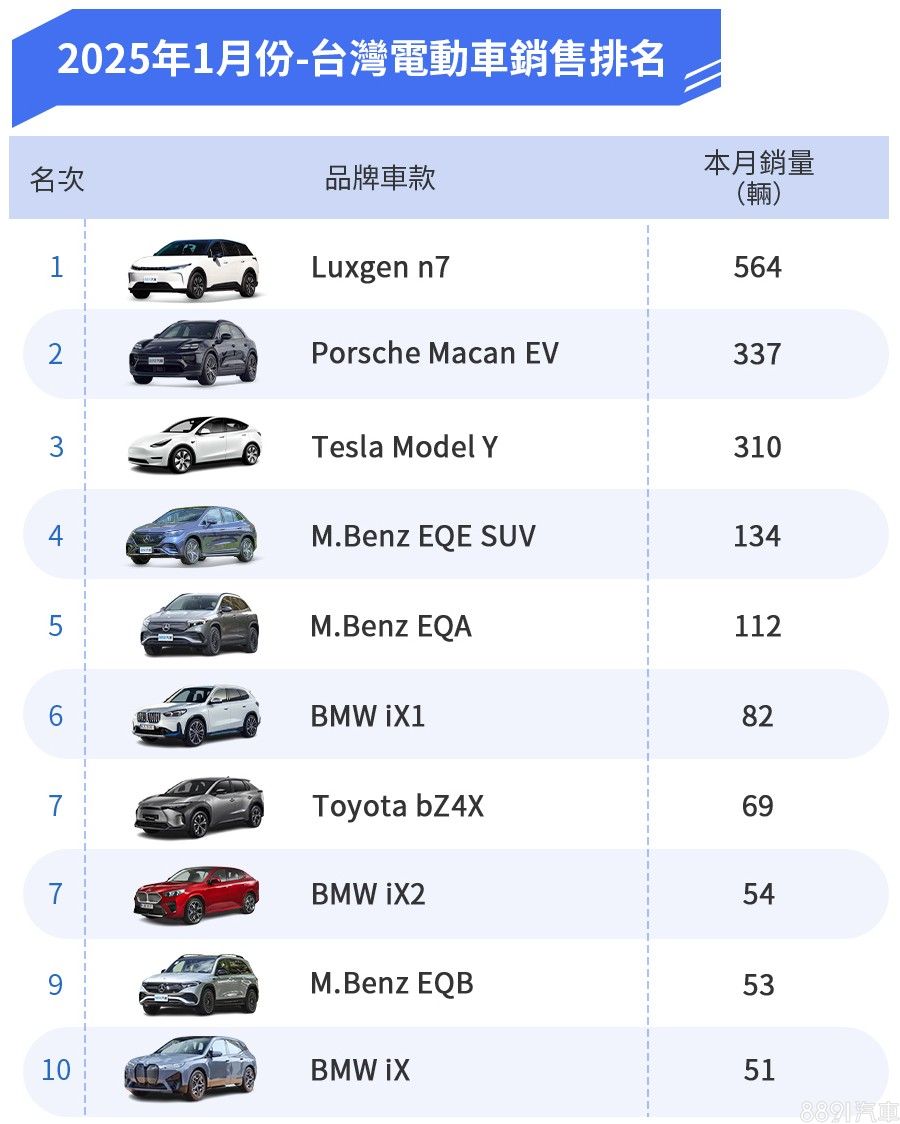 除了榜首之爭很精采外,本月榜單也出現亮點,那就是首度進榜的Porsche Macan Electric,自去年11月在台上市後,迎來首個完整銷售月份,就以掛牌數337台空降亞軍位置,台灣人熱愛保時捷果然不是隨便說說!