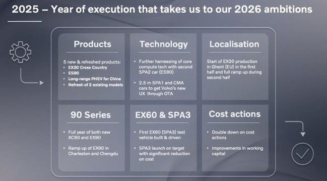 很多人期待的EX60則會在2026年抵達,可視為XC60的純電版本,將採用全新SPA3架構,比現行SPA2平台相比運算能力、擴充性都更強。