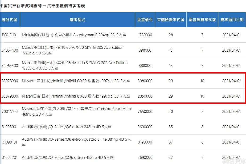 跟進海外策略,Infiniti預計將在本周為國內QX60陣容進行更新,有別於現行3.5升自然進氣V6設定,車系將導入2.0升渦輪新動力,雖說目前台灣官網已經上架新車簡介,但價格仍尚待公布,不過保發中心的公開資訊,似乎透露些許玄機。