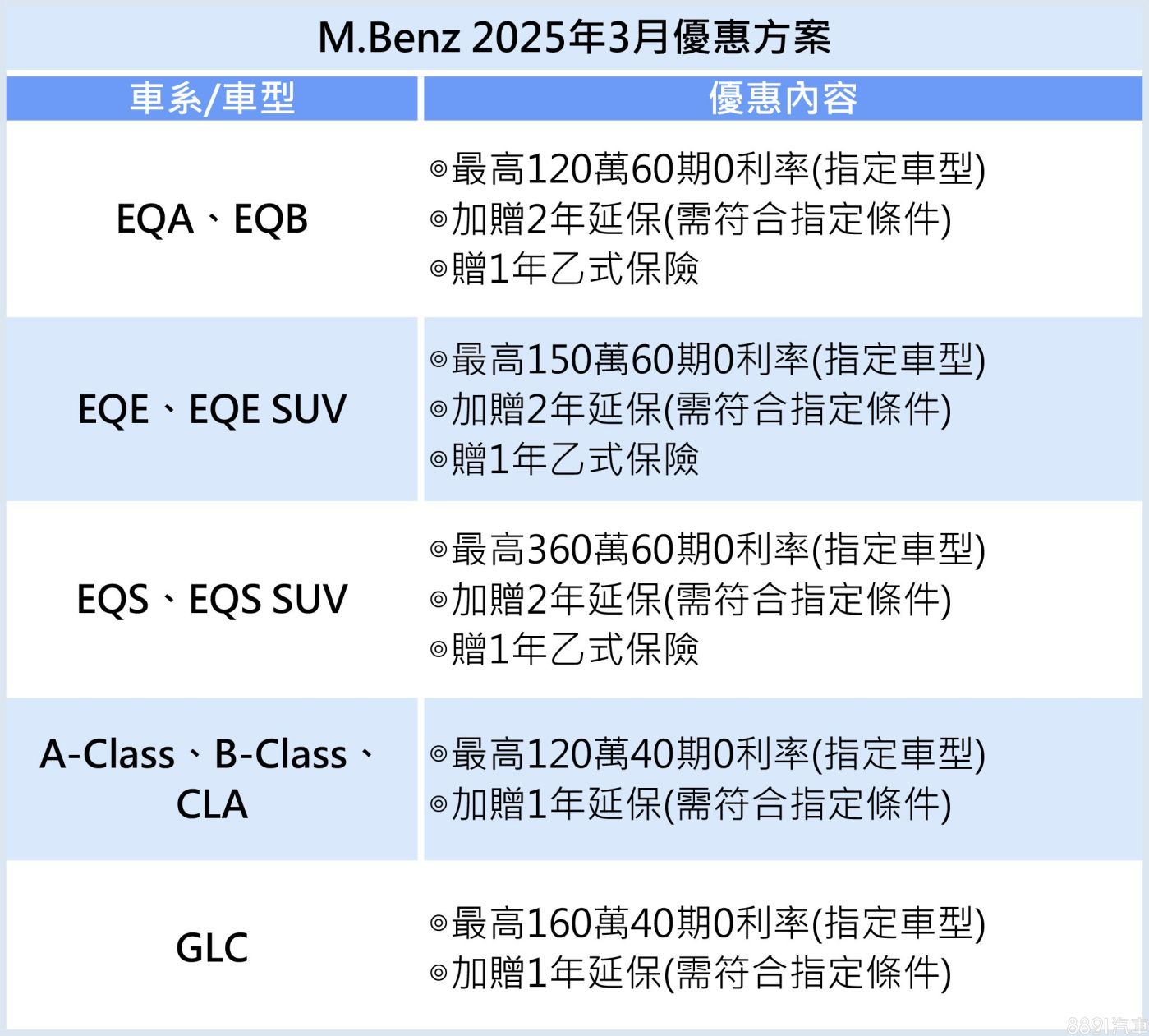燃油車也視不同車系車型,提供120至160萬40期0利率,另可加贈1年延保,詳情可洽全台各台灣賓士授權展示中心。