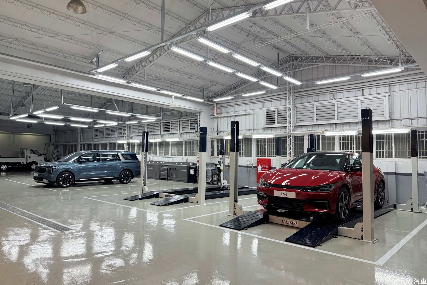 服務廠內設置有4個工位,從電動車到商用車卡旺都能提供完整的保修服務,充分滿足中部Kia全車系車主的需求。此外,在賞車或維修保養的同時,更可享受由專人提供的星巴克咖啡服務。