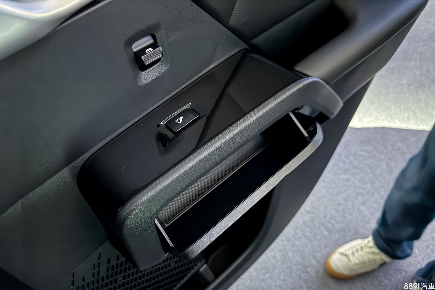Mufasa的後車窗開關設計位置更上方且為撥桿式樣,不知道這樣會不會狗狗比較不容易誤觸?下方則為貼心的置物盒。