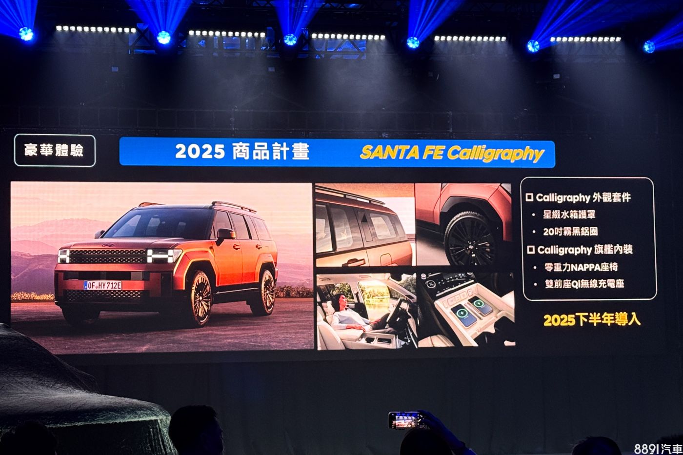 而在電動小車之後,原廠也將為Santa Fe追加新的「Calligraphy」車型,除了有專屬套件,還將搭載20吋霧黑鋁圈、零重力Nappa座椅、雙前座Qi無線充電等配備。