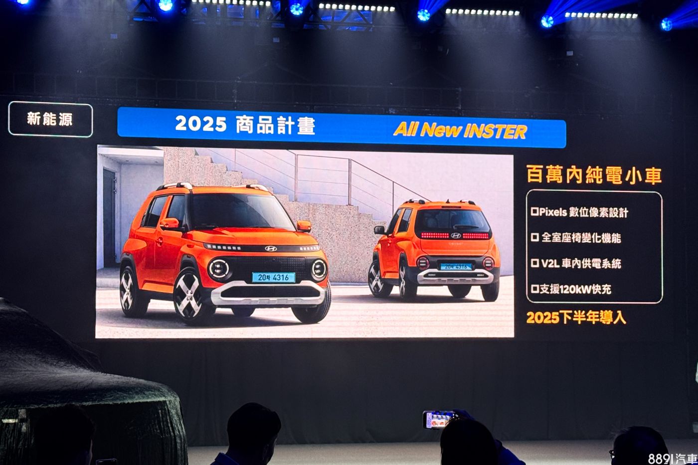 可望第三季和大家見面的純電小車Inster,原廠喊出了「百萬內」的價位,主打小車座椅多變化的機能性,並支援V2L車內供電系統,以及120 kW快充功率。