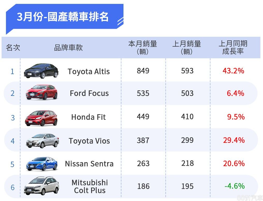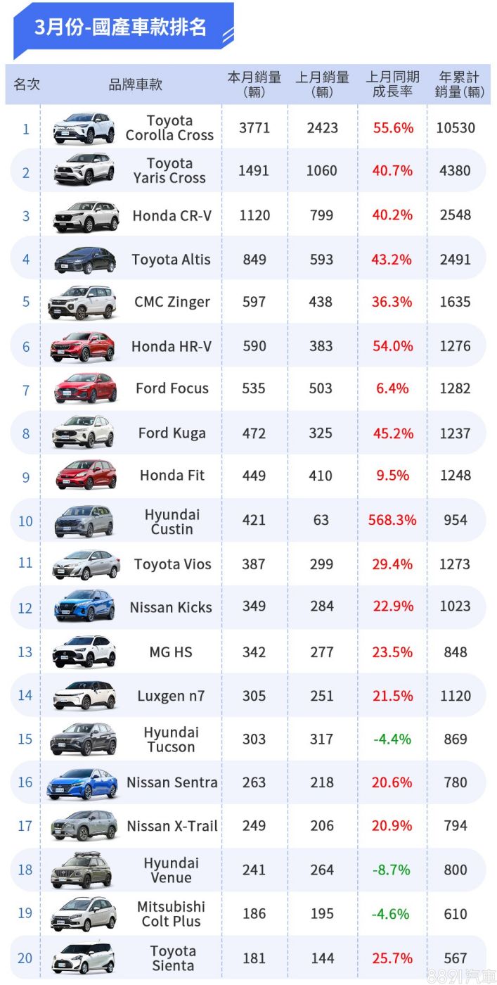 3月份國產車款Top 20