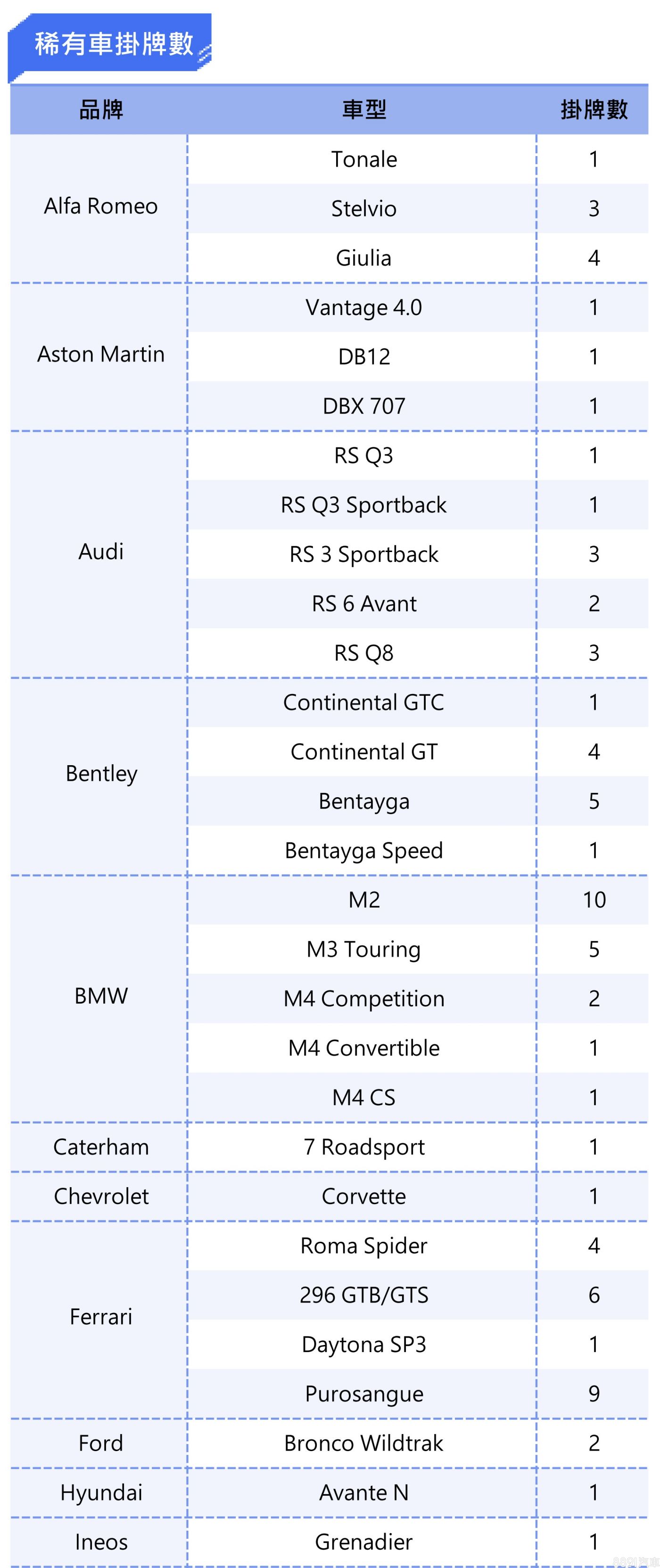 時常爆量交車搏版面的特斯拉,本月份Model 3、Model X都迎來大成長,兩台車產地都是美國,沒意外就是一齊到港,下個月就輪到德國產的Model Y了。Mazda本月表現也不錯,CX-30、Mazda3於三月份有高額零利率、5保固優惠,分別催生出165%、21%成長幅度。