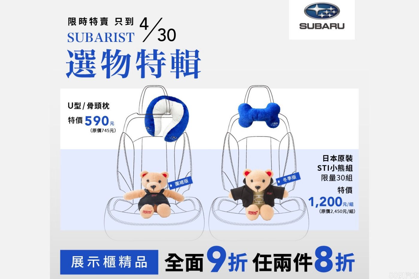 此外,即日起至4月底止,全國據點也同步展開「SUBARIST選物特輯」的限時特賣活動,現場展示櫃精品全面9折、任兩件8折,其中SUBARU STI小熊組(圍裙與冬季版)原價2450元,特惠價只要1200元!