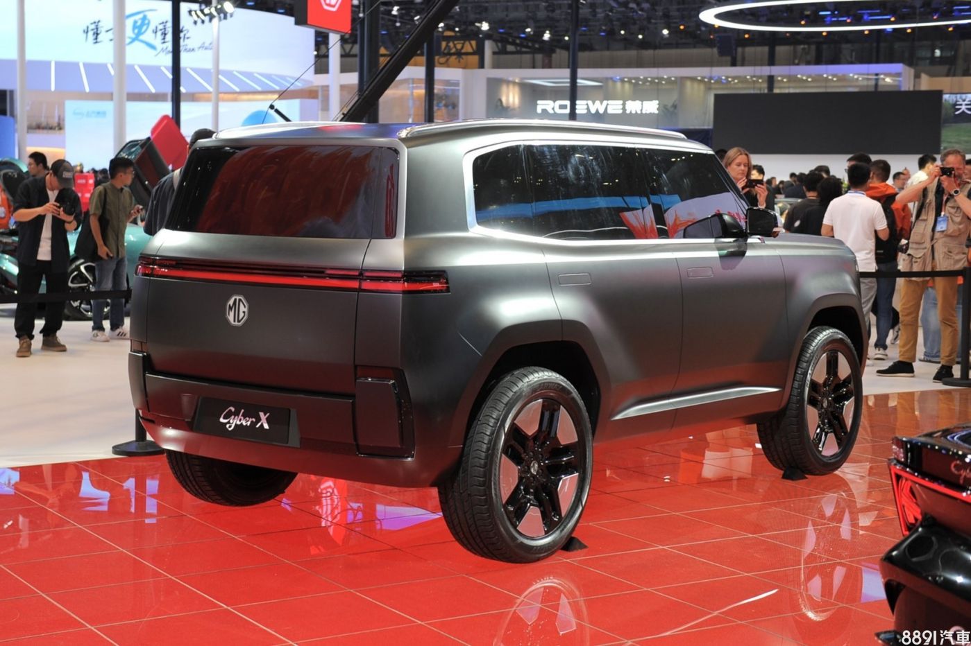 MG Cyber X概念車,採用時下流行的「賽博龐克風」,發光廠徽、貫穿式燈帶、分離式頭燈配上方正輪廓,有著相當機械感的面容,特別的是,車輛具備掀燈設計,啟動時才會打開。