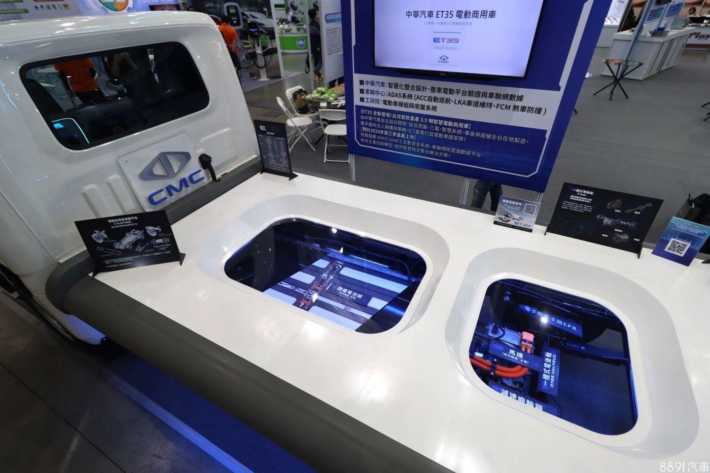 全新3.5噸電動商車ET35,是中華汽車與工研院、車輛中心、ICT產業攜手,共同開發國產化關鍵零組件,打造從底盤、動力系統到電池芯和模組,全車在地化比率超過九成,是國內首輛依循經濟部「智慧電動車十加一系統架構」開發完成的車型。