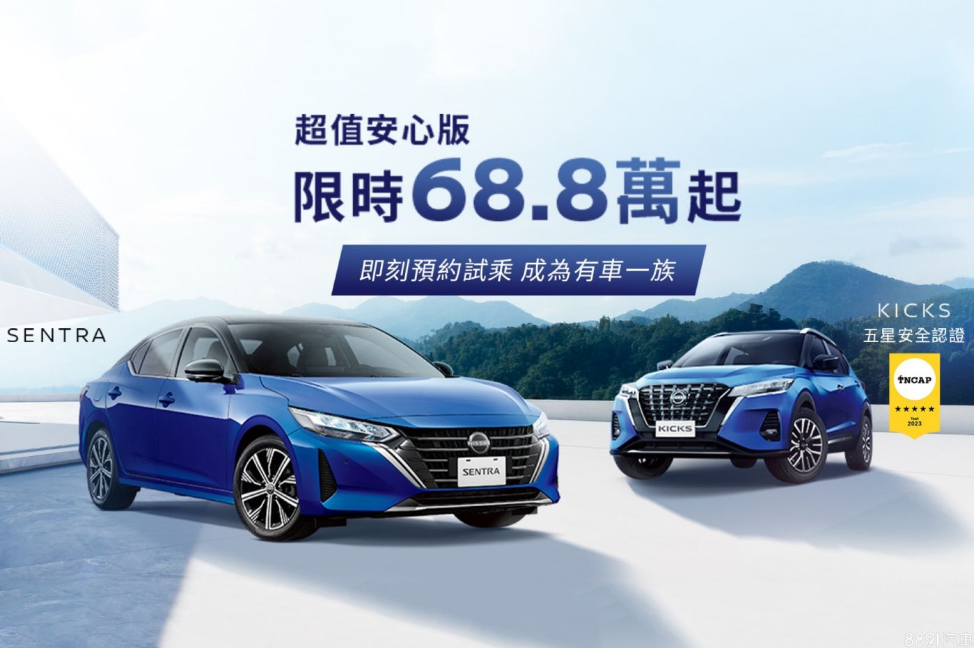 Nissan針對旗下人氣車款Kicks、Sentra,推出「超值安心版」,均是以入門車型為基礎,同步開出73.8萬元的售價,等於分別現折7.7、4.7萬元,且搭配政府舊換新退稅優惠,算下來最低68.8萬即可入手,不過雙車型各限量100台。